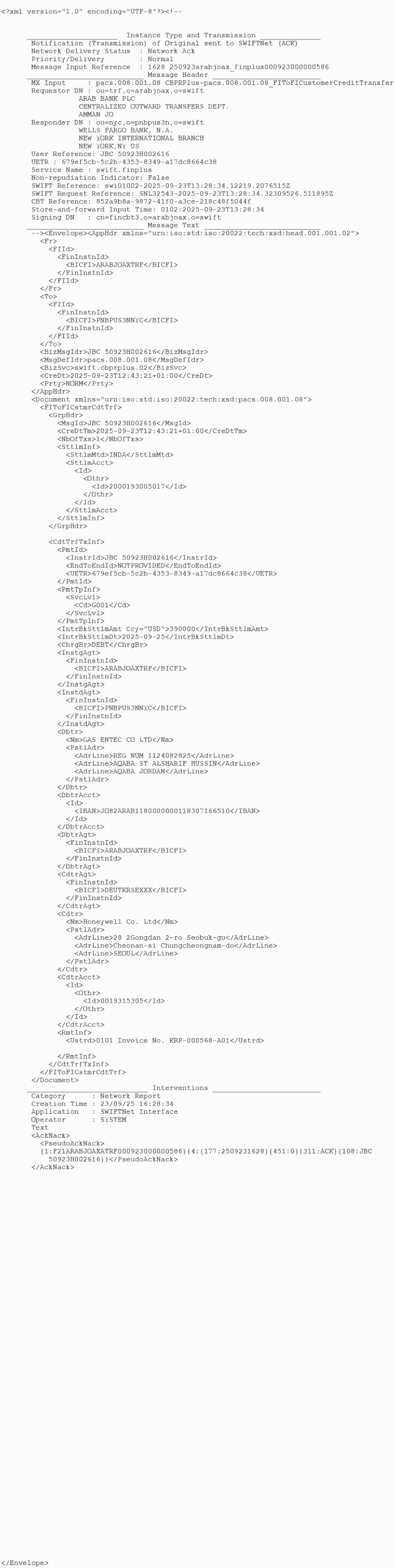 USD - Arab Bank ACC # 0118/307166-9/510